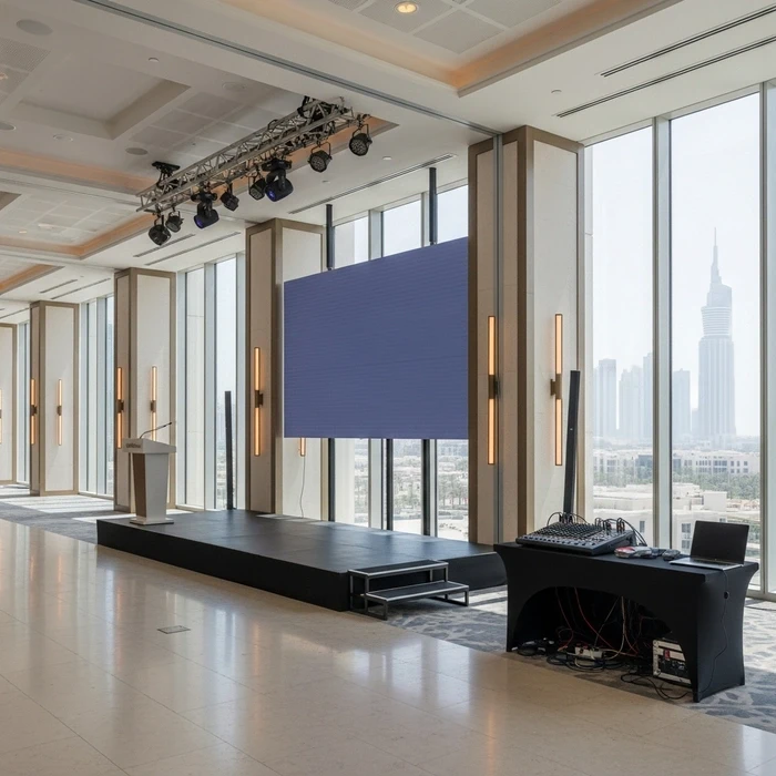LED wall venue requirements UAE center on three variables. First, available wall or structure for mounting. Second, pixel pitch suitability for audience viewing distance. Third, power draw relative to available circuits. Confirm projection throw distance as an alternative if LED installation proves restricted.