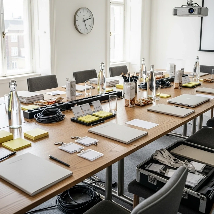 Your training room setup checklist should be locked at least 72 hours before the program starts, with written confirmation from the venue that overnight resets will match your requirements.