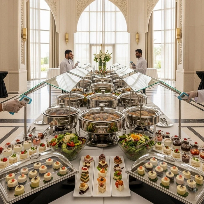 Flaash Expert Insight: For corporate events at conference venues across Abu Dhabi, confirm that your caterer maintains a written protocol for temperature logging during outdoor receptions. Ambient heat in the Capital can push buffet items past safe thresholds within 20 minutes of plating.
