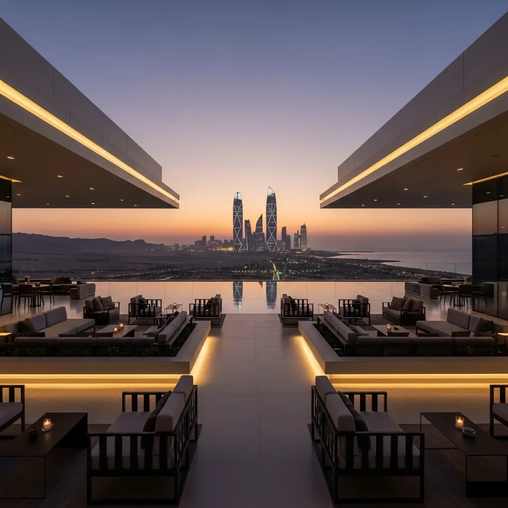 NEOM currently offers curated corporate event venues across Sindalah (beach and marina decks), Trojena (mountain viewpoints, lakeside terraces) and Oxagon (innovation spaces), plus bespoke desert/coastal builds. Availability is evolving; pair sites with Tabuk hotel ballrooms for larger conferences and MICE programs.