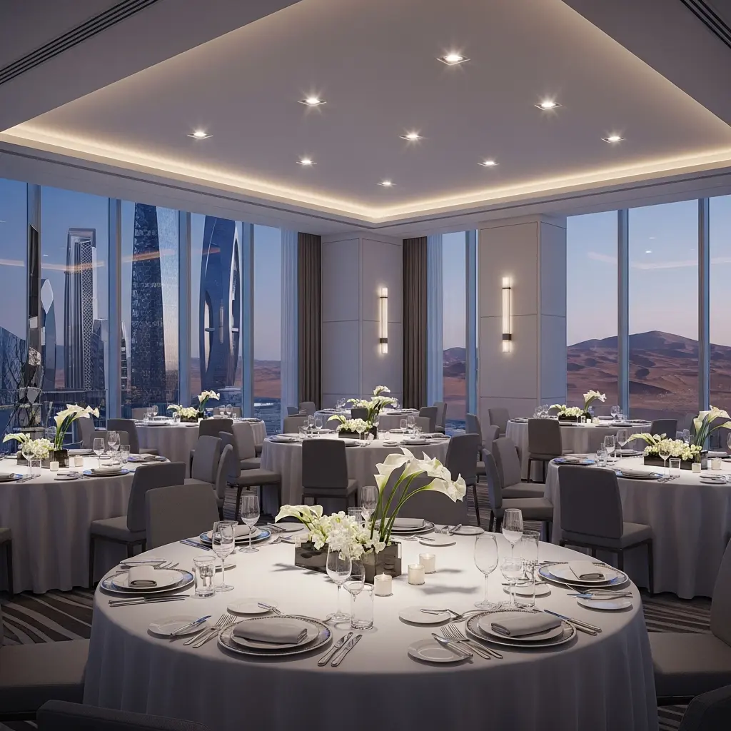 Corporate networking dinners in Neom can be hosted at upscale waterfront restaurants, luxury hotel ballrooms, and exclusive rooftop terraces across emerging destinations like Sindalah and Leyja. These venues combine fine dining with stunning desert and coastal backdrops that encourage meaningful professional connections.