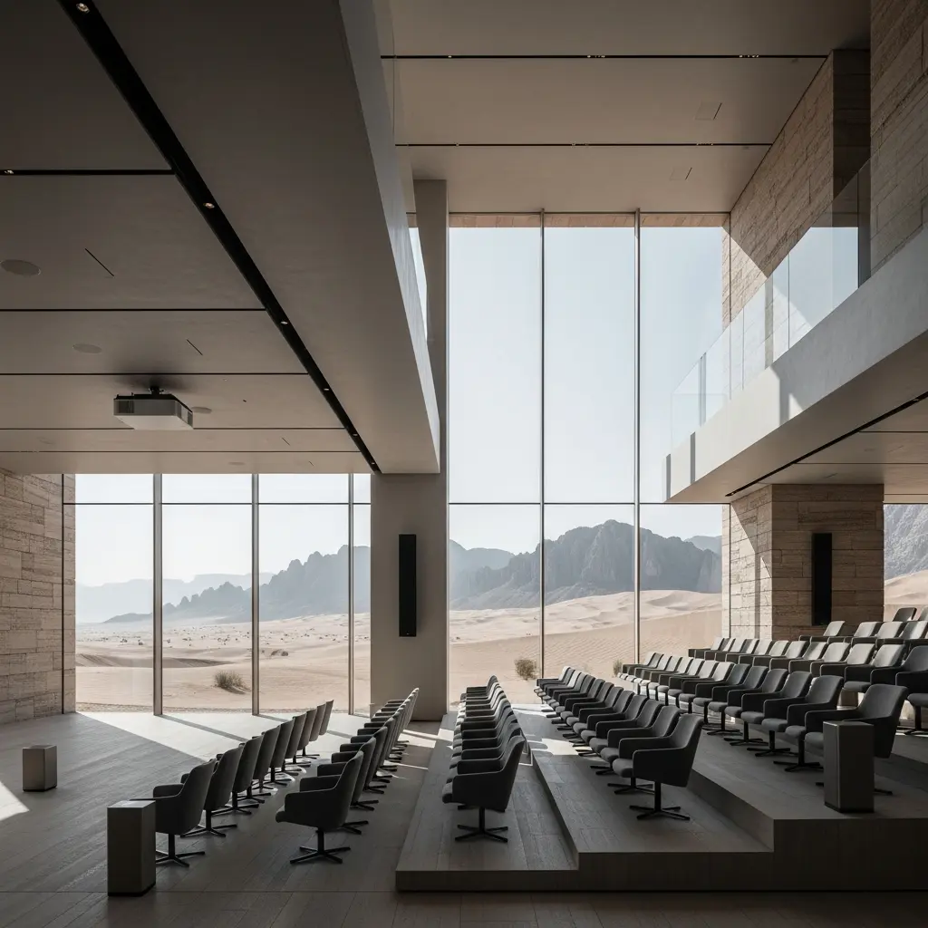 High-tech seminar halls in Saudi Arabia located within Neom feature state-of-the-art audiovisual infrastructure, hybrid event capabilities, and dedicated tech support teams. AV-equipped boardrooms in NEOM come standard with the kind of setup that would normally require weeks of coordination with third-party vendors. From immersive LED walls and spatial audio to real-time translation systems, these spaces are engineered to support an immersive corporate experience in NEOM at every level. Whether you are running a live-streamed panel discussion or an internal training workshop, the technology is already in place and managed by on-site specialists who understand the demands of professional events.