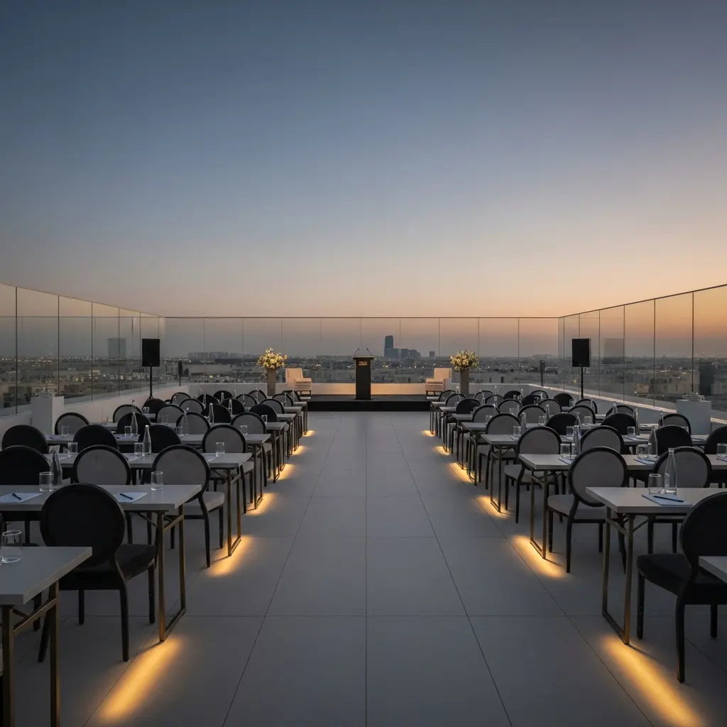 For breezy, open settings, outdoor rooftop venues in Abu Dhabi offer fresh air, unobstructed skyline views, and photo-friendly design. Ideal from October to April, many provide shade solutions, misting or heaters, and contingency plans should weather shift. With proper lighting design and wind-aware mic setups, they’re also excellent for town halls, fireside chats, and intimate performances that feel exclusive and on-brand.