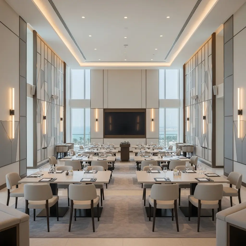 Ajman's newer hospitality developments have invested heavily in purpose-built event floors. Properties now offer pillarless ballrooms, pre-function foyers ideal as professional networking venues, and modular walls that let you expand or divide space as your agenda requires. The absence of structural columns ensures unobstructed views from every seat, which is critical for keynote presentations, award ceremonies, and panel discussions where audience engagement depends on clear sight lines to the stage.