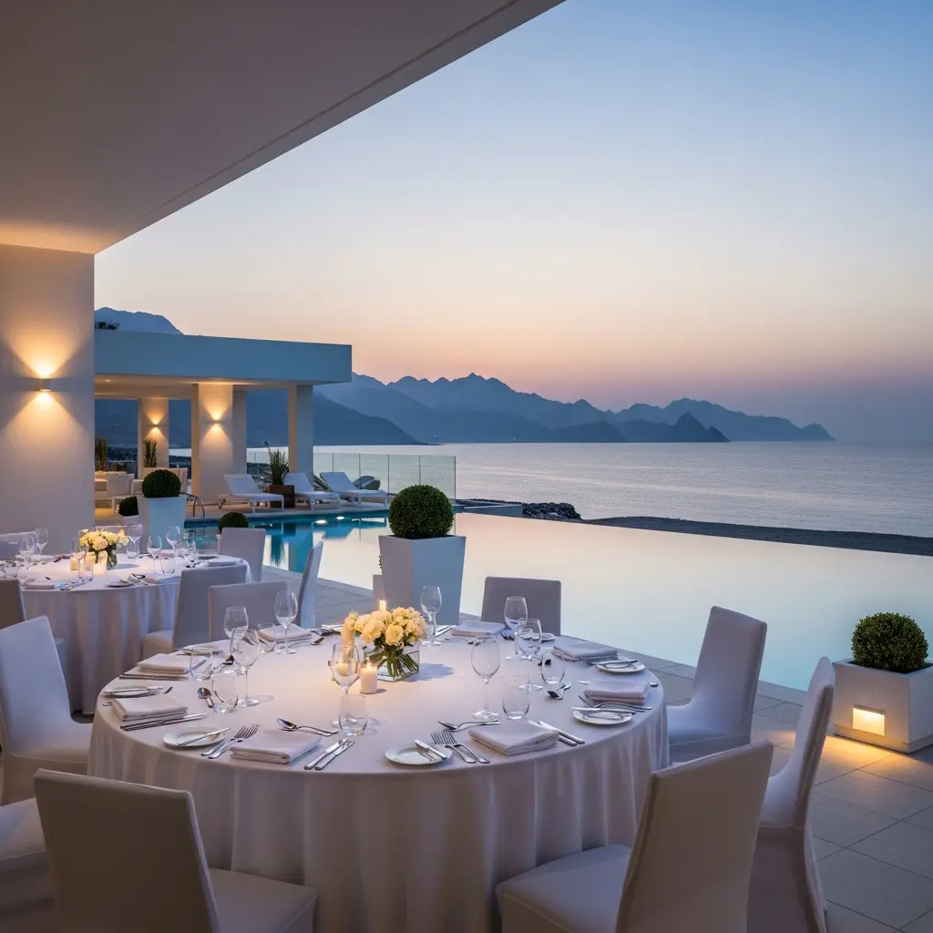 When evaluating a seated dinner venue Fujairah Emirates, pay attention to the terrace layout. Can it accommodate round tables for 100 guests with space for a stage? Is there room for a welcome area where attendees can gather before being seated? These details matter more than they seem, especially when you are managing a tight timeline and client expectations.