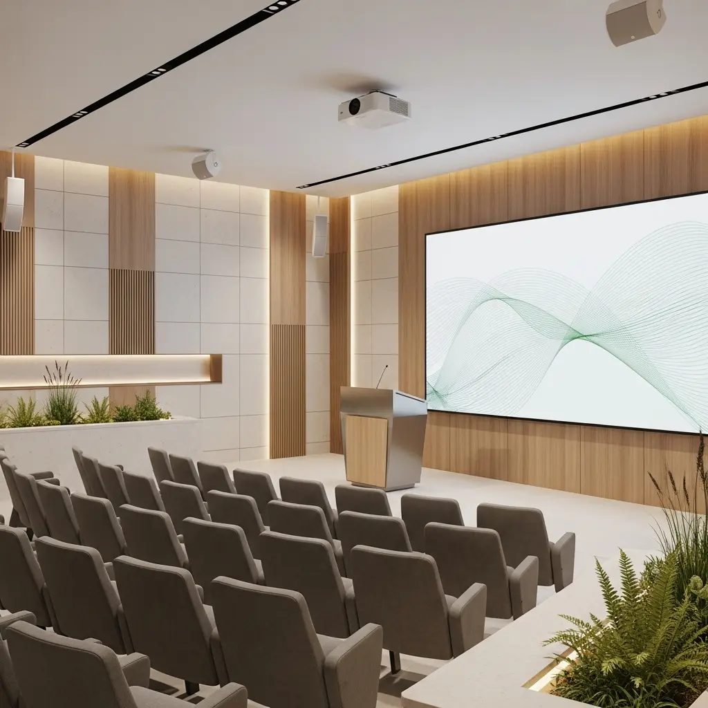 Reliable high-speed Wi-Fi that holds steady during video calls, with a dedicated SSID for presenters where possible.